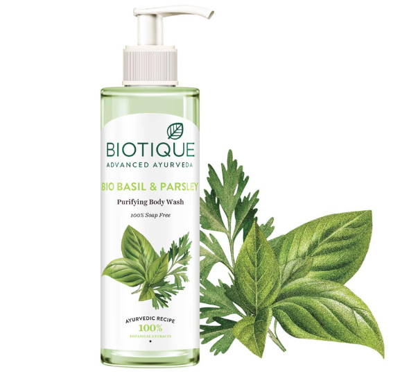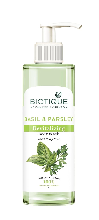 - Key ingredients:Enriched with the beneficial properties of Basil this biotique bio basil and parsley body wash is known for its rejuvenating effects, Parsley aids in swift skin recovery, complemented by the anti-inflammatory characteristics of peppermint.