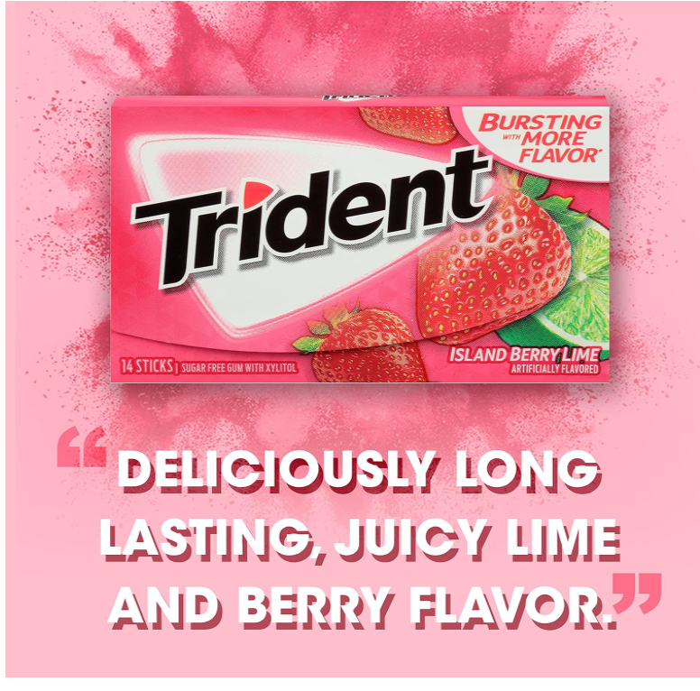 Trident Sugar-Free Chewing Gum in Island Berry Lime Flavor offers a refreshing and exotic twist on traditional gum, providing a burst of tropical flavor that will transport you to paradise with every chew.