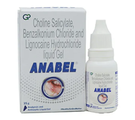 Anabel Liquid Gel is a combination medicines used to treat mouth ulcers. It contains Benzalkonium Chloride, Choline Salicylate, Lignocaine Hydrochloride as active ingredients that helps to reduces the pain, swelling, redness, and burning sensation of the ulcers.